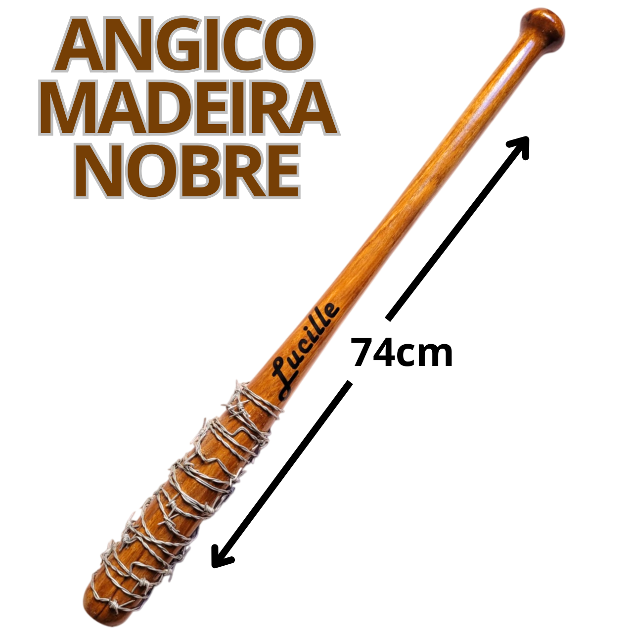Cada Taco de Beisebol Lucille é feito artesanalmente, garantindo a mais alta qualidade em cada detalhe. Ele é confeccionado em madeira nobre de angico, uma escolha que se destaca por sua excepcional resistência e durabilidade. Comparado a outras madeiras comuns, como pinus ou eucalipto, o angico oferece não apenas uma estrutura sólida, mas também um acabamento sofisticado com seus veios naturais marcantes.