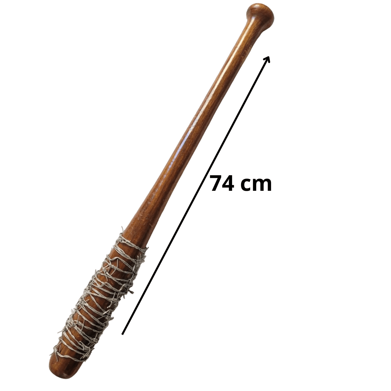O Taco de Beisebol Arame Farpado The Walking Dead é uma réplica fiel da icônica arma usada pelo vilão Negan na famosa série The Walking Dead. Medindo 74 centímetros de comprimento, este taco é produzido artesanalmente em madeira nobre de Angico, garantindo resistência, durabilidade e impacto visual impressionante.